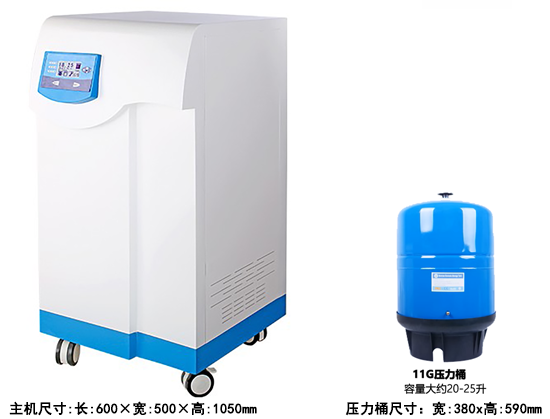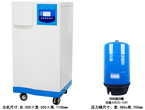 9.采用进口全封闭真空压力储水桶,有效的保证了纯水水质,避免了因储存带来二次污染、阳光照射、微生物滋长等。