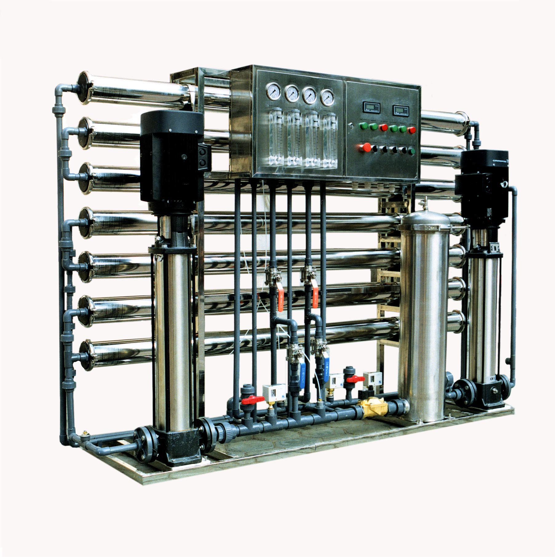 整个反渗透系统由高压泵、反渗透膜、压力容器以及相应的仪器、仪表、阀门、机架、管道及管件等组成;此外还有独立的化学清洗装置。